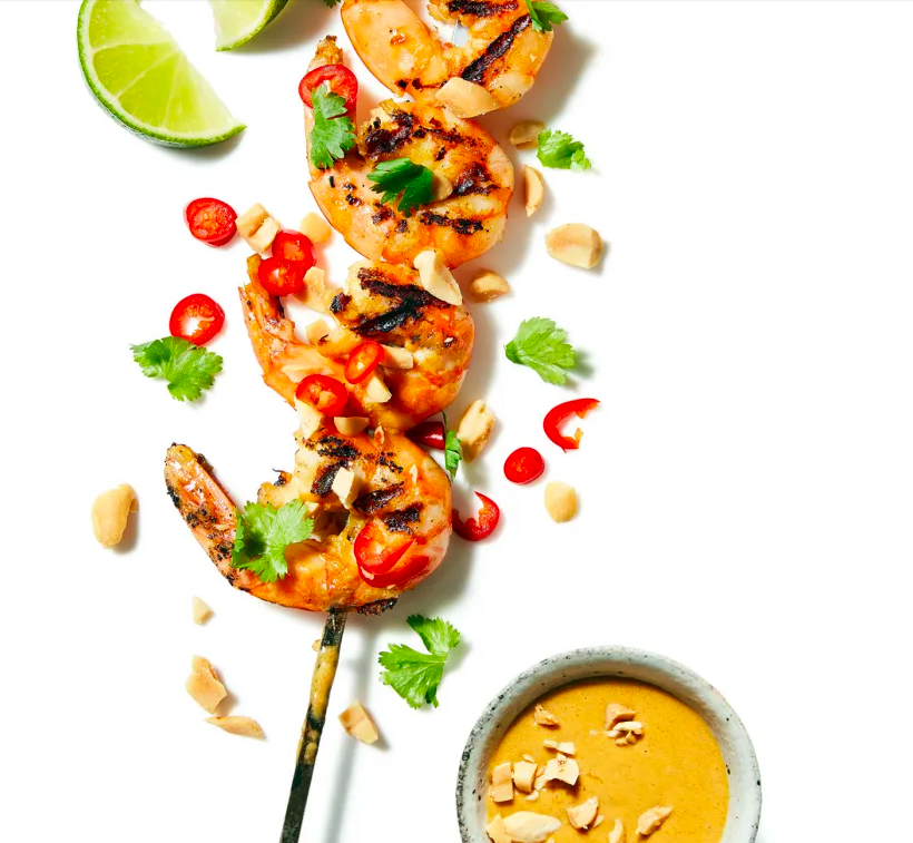 Heat the grill to medium-high. Thread the shrimp onto skewers; season.