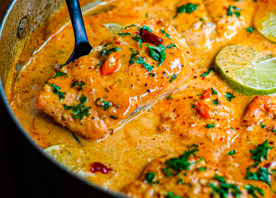 A beautiful, subtle salmon dish using the milder Indian spices, sweetened with tomatoes and coconut milk. You will love it and the sauce complements the salmon beautifully.