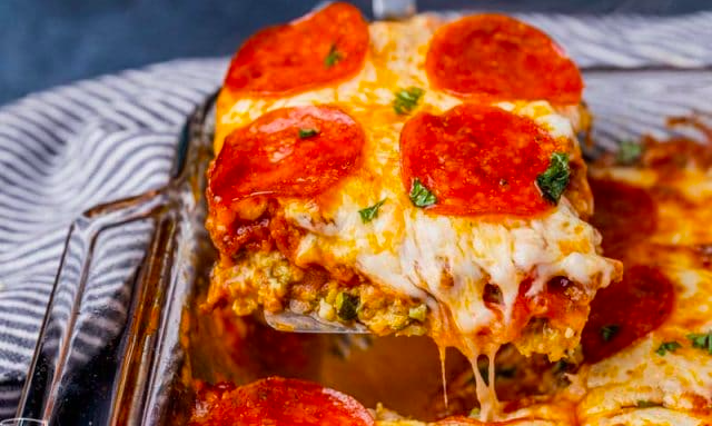 This recipe is from food blog, “Taste of Lizzy T” and is such a great idea, using the pizza flavors, but none of the carbs. It’s more of a casserole, so don’t expect it to be a pizza alternative, it just has all those great flavors.
