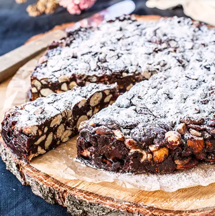 “I’ve encountered quite a few versions of chocolate salame in Italy – coming to the conclusion that it’s really an Italian version of our chocolate refrigerator cake – and although I am not normally a huge fan of the culinary pun, Christmas does seem the right time of year for such whimsical enterprises. And, I admit, the chocolate salame does have a certain charm, especially when dusted with icing sugar, tied like a proper salame with string.