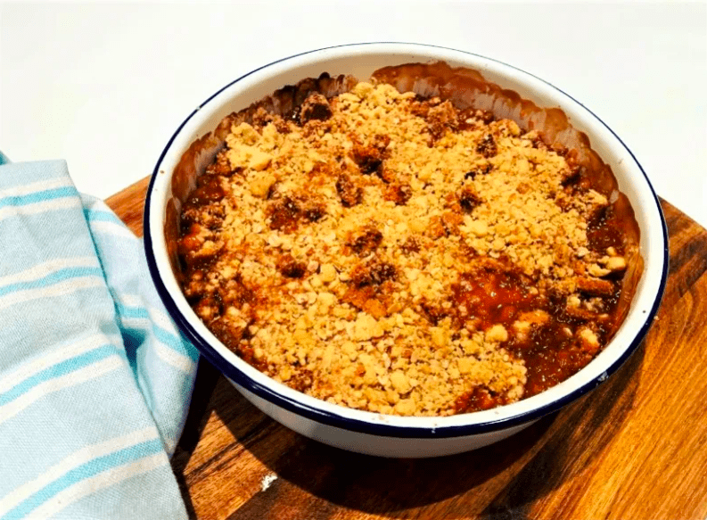 Remove from the oven and leave it to rest for 10-15 minutes before serving, then serve it warm with custard, pouring cream or ice cream.