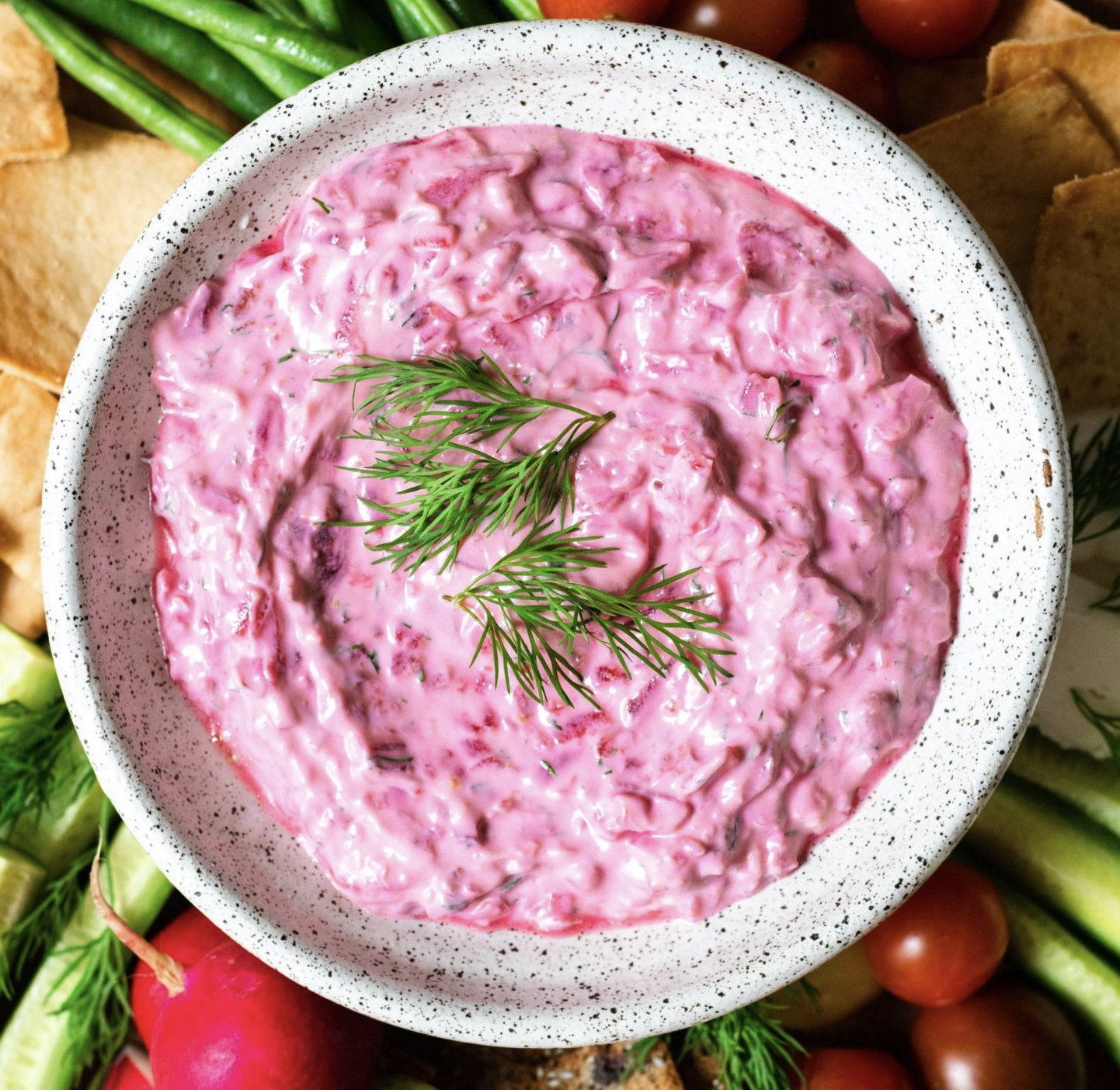 Beet and dill tzatziki with fried capers