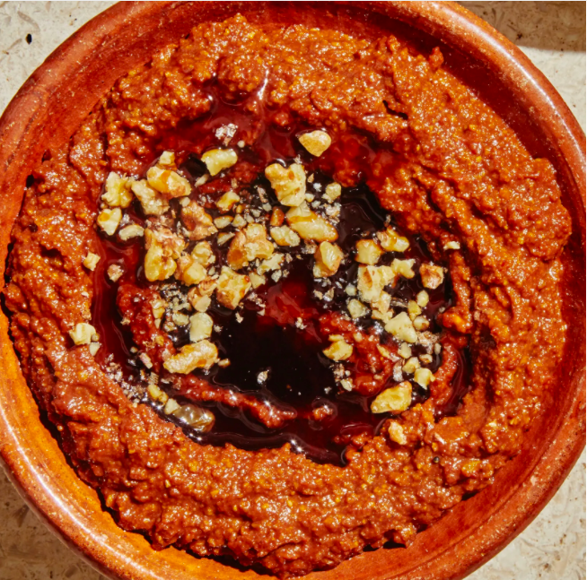 Muhammara- Middle Eastern roasted red pepper and walnut dip