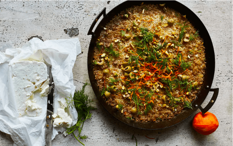“It’s the kind of meal you’d make for a special occasion. We toyed over including this recipe in the book, laborious as it is, but, in all honesty, Noor wouldn’t have it any other way. Rice, she believes, deserves to be prized and treasured – taking centre stage at many a family table – and so, make this one as a weekend project, a feast of feasts, a real cause for celebration. Yes, it takes time, but here’s a promise that it is oh-so-worth-it.”