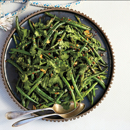 Such a lovely combination of flavors. Don’t rush to shake the pan and toss the green beans before they blister; they need a little time to char.