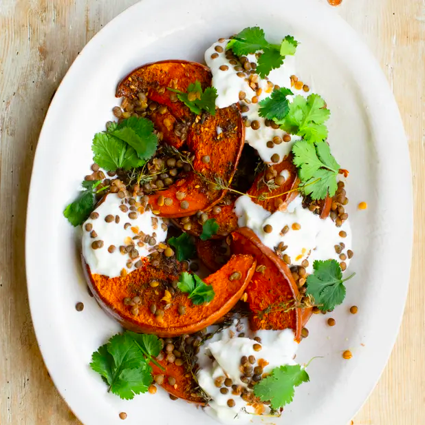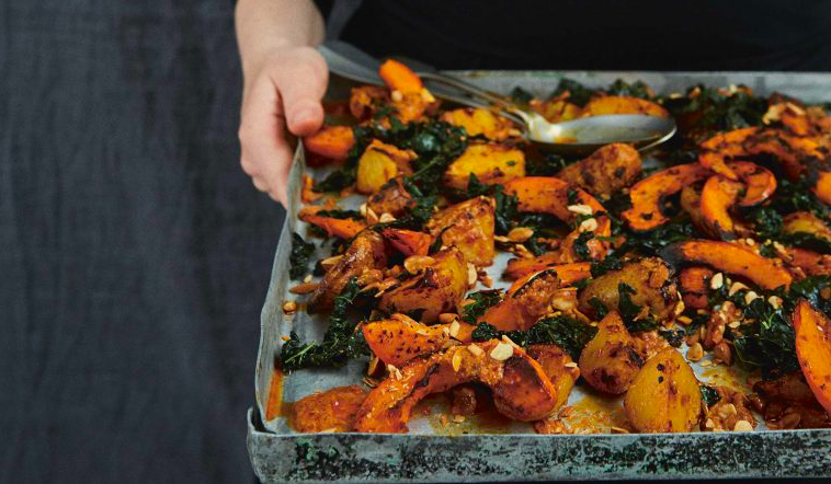 “This comforting dish lands somewhere between a lasagna and a pie. Thinly sliced butternut squash and broken dried lasagna noodles are all tossed together in one bowl with cheese, spices and a red pepper sauce, then pressed into a cake pan before baking, at which point everything softens and cooks together into imperfectly perfect layers. A simple béchamel topping is made while your pie is in the oven, leaving you ample time to get on with assembling a big salad or a side dish of your choosing.”