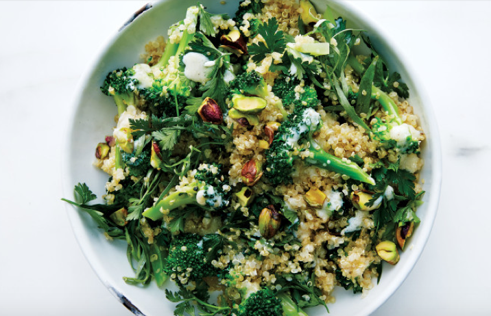 Toss the greens, mint, chives, parsley, and lemon juice together in another medium bowl, and season with salt and pepper and a bit more lemon juice if you like.