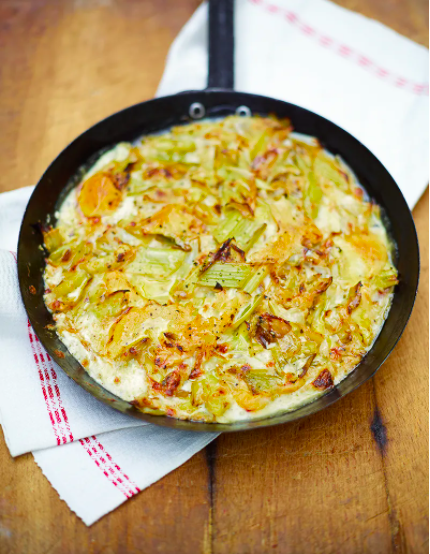Prepare the leeks: Place the sliced leeks into a colander and rinse them well, rubbing to loosen any dirt. Rinse them again and drain well. (There is no need to dry them, as the residual water is useful in cooking the leeks.)
